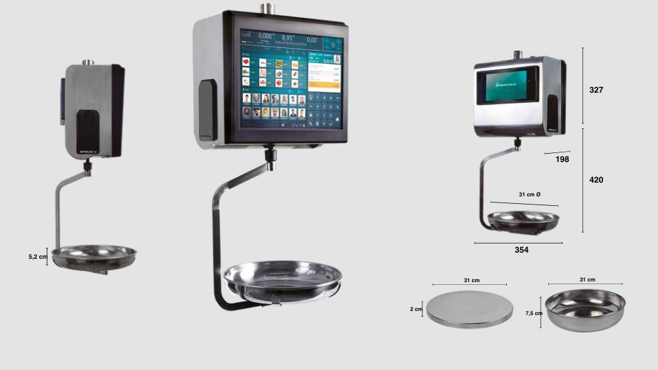 Balance suspendue en acier inoxydable avec étiqueteuse thermique, écran tactile 15’’ et écran client 9’’. Disponible en plateaux plat, semi-creux ou creux, multi-langues, codes-barres EAN et gestion complète des ventes. Robuste, sécurisée et polyvalente pour vente, emballage et libre-service.